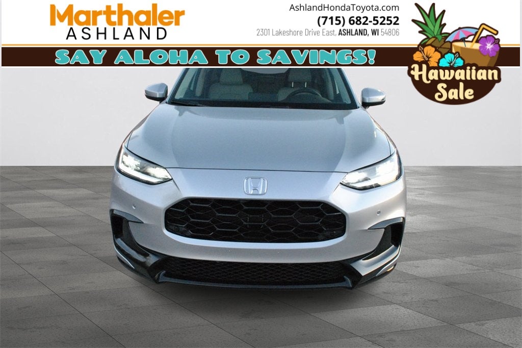 Solar Silver Metallic 2026 Honda HR-V EX-L AWD CVT 2.0L I4 DOHC 16V i-VTEC AWD, Safety Sensing (Pre-Collision Detection, Adaptive Cruise, Lane Keep Assist, Auto High Beams), Blind Spot Monitor, Back-Up Camera, Push Button Start, Heated Leather Seats, Power Seats, Remote Start, Touch Screen Audio, Bluetooth® Hands Free Phone, Apply Car Play/ Android Auto, Keyless Entry.